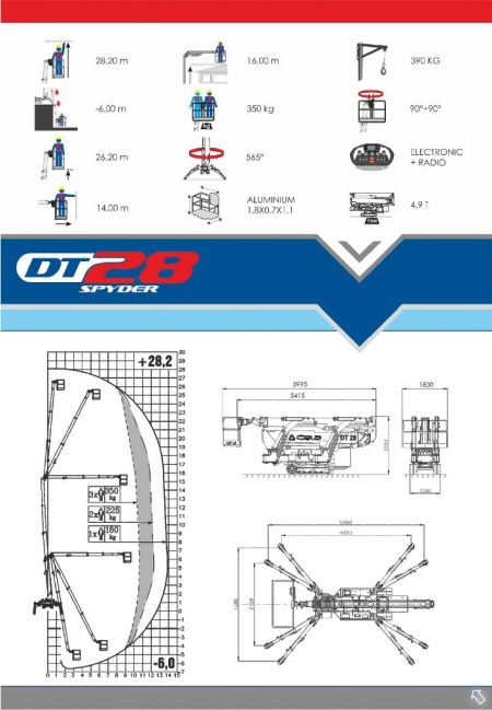 MAX. WORKING HEIGHT mt 37,50 MAX. WORKING OUTREACH mt 24,00 MAX. DOWNREACH mt 5,00 MAX. UP-AND-OVER CAPACITY mt 8,50 SAFE WORKING LOAD kg 400 RESCUE CAGE SIZE mm 2000x100...
